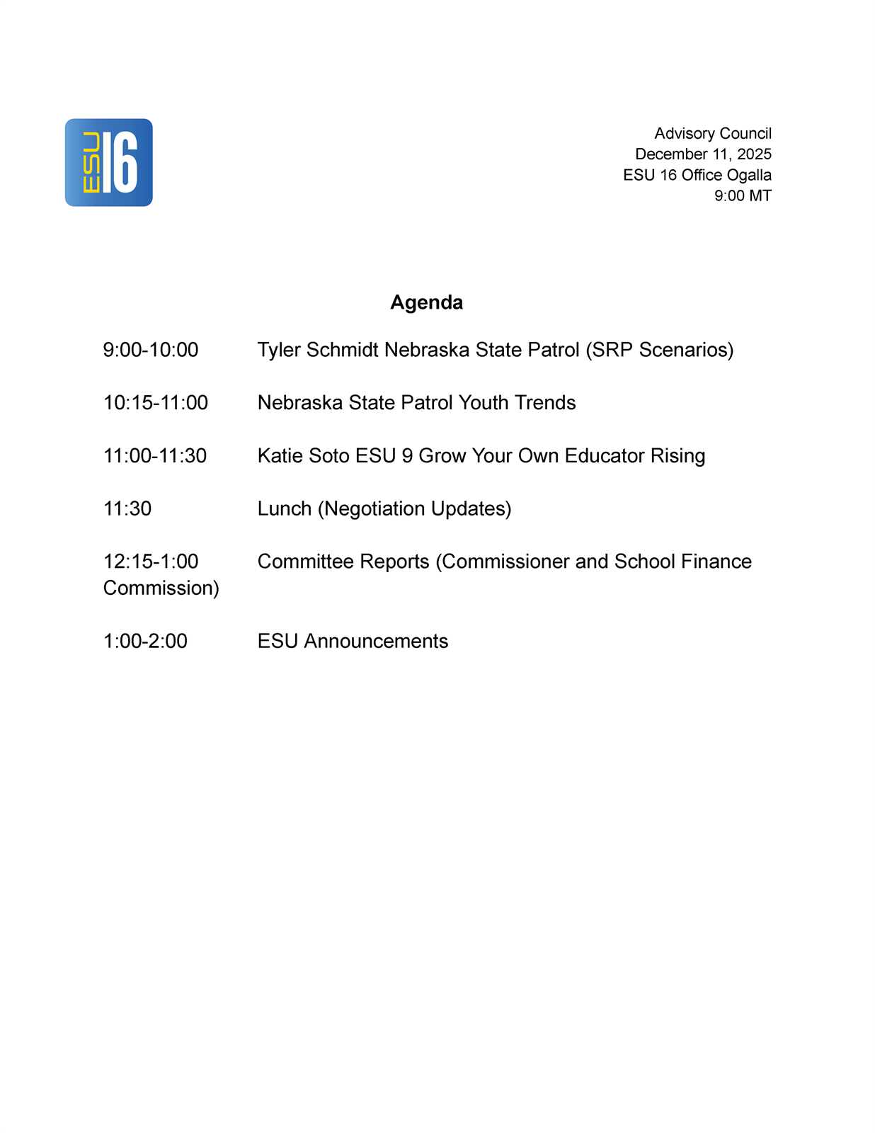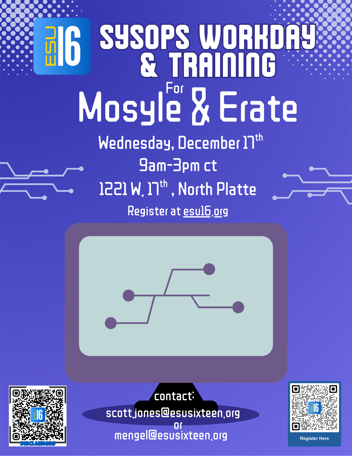 To avoid registration charges to your district, please let the ESU 16 contact know w/in 48 hours if you cannot attend.  We understand that unforeseen circumstances may arise. This procedure helps us plan effectively and ensures resources are used efficiently.